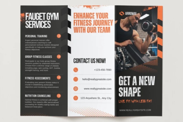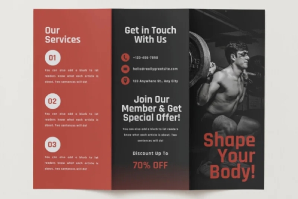 Brochure quảng bá phòng gym hoặc trung tâm fitness