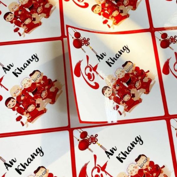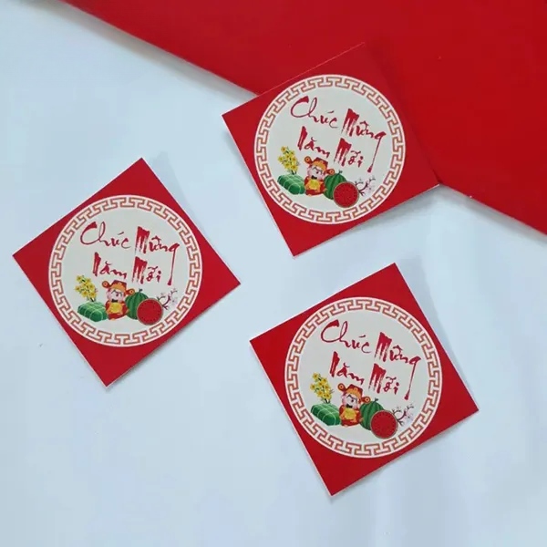 - Cán màng bảo vệ: In tem chúc mừng năm mới cán màng giúp tăng khả năng chống nước, chống trầy xước, giữ tem luôn mới.