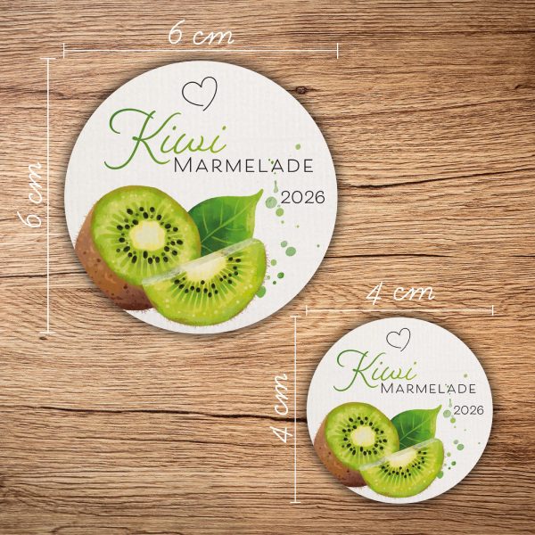 Do dán trực tiếp lên trái kiwi nên tem thường nhỏ gọn để không che nhiều diện tích trái cây. Kích thước phổ biến: