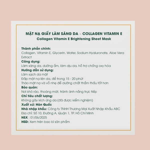 Để đảm bảo tính pháp lý, một mẫu tem phụ collagen cần thể hiện đầy đủ các thông tin sau bằng tiếng Việt: