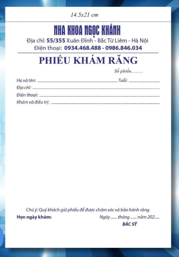 Là một địa chỉ in ấn được nhiều đối tác lớn nhỏ ghi nhận chất lượng dịch vụ và ấn phẩm in, In Hoa Long luôn cố gắng phát triển và hoàn thiện hơn nữa để hỗ trợ khách hàng hoạt động hiệu quả. Nếu bạn đang có nhu cầu in mẫu hóa đơn nha khoa, liên hệ với chúng tôi để được tư vấn.