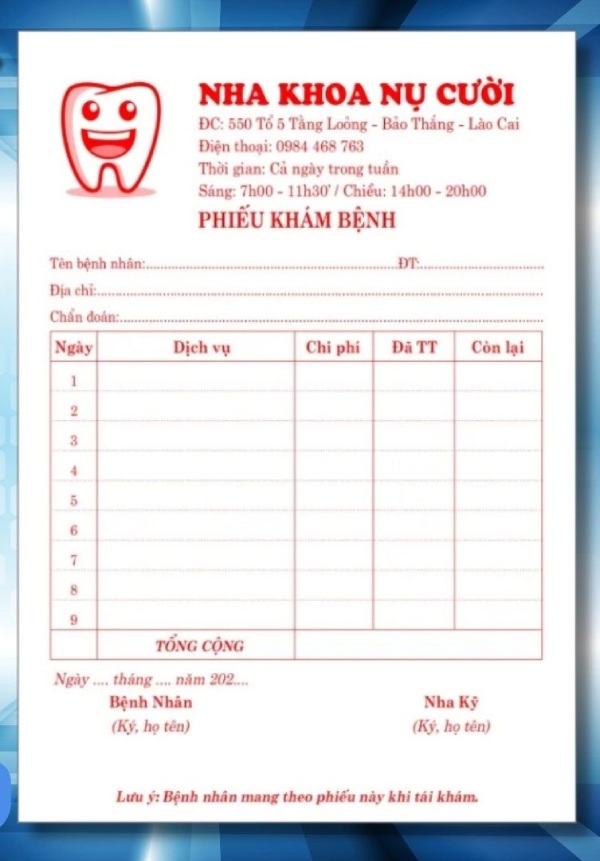 Tầm quan trọng của mẫu phiếu thanh toán Nha Khoa