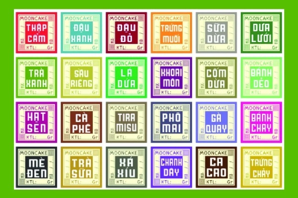 - Tem có kích thước nhỏ gọn, nội dung đơn giản, họa tiết không cầu kỳ, tập trung vào loại nhân bánh là chính.