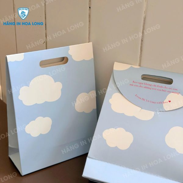 Mẫu túi giấy nắp gập là dòng bao bì được nhiều doanh nghiệp lựa chọn nhờ thiết kế gọn gàng, chắc chắn và tính thẩm mỹ cao. Phần nắp gập giúp bảo vệ sản phẩm tốt hơn, đồng thời tạo cảm giác sang trọng khi trao tay khách hàng. Các mẫu túi đa dạng về kích thước, chất liệu và màu sắc, phù hợp cho quà tặng, mỹ phẩm, thời trang hay sản phẩm cao cấp. Đây là giải pháp bao bì vừa tiện dụng vừa góp phần nâng cao hình ảnh thương hiệu.