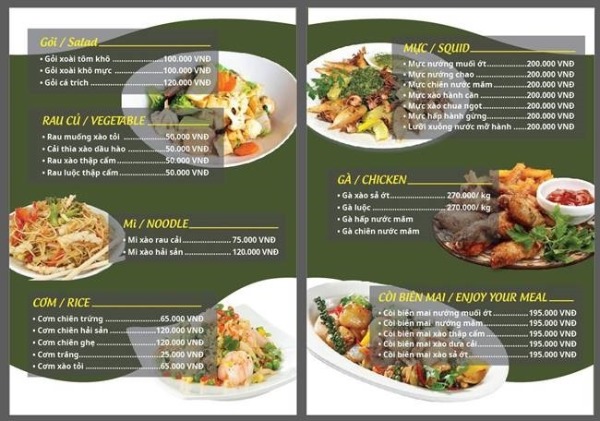 - Thực đơn cho ngành ẩm thực như ở các nhà hàng, quán ăn…