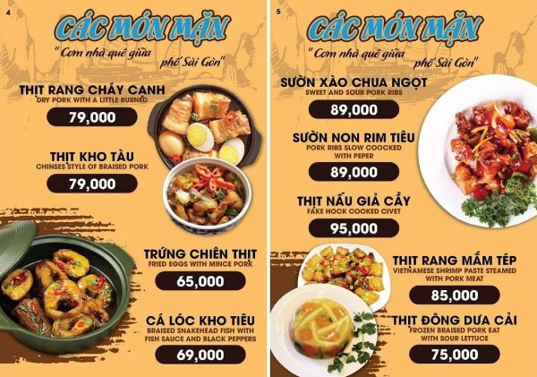 - Thực đơn tại các khách sạn, resort, homestay…